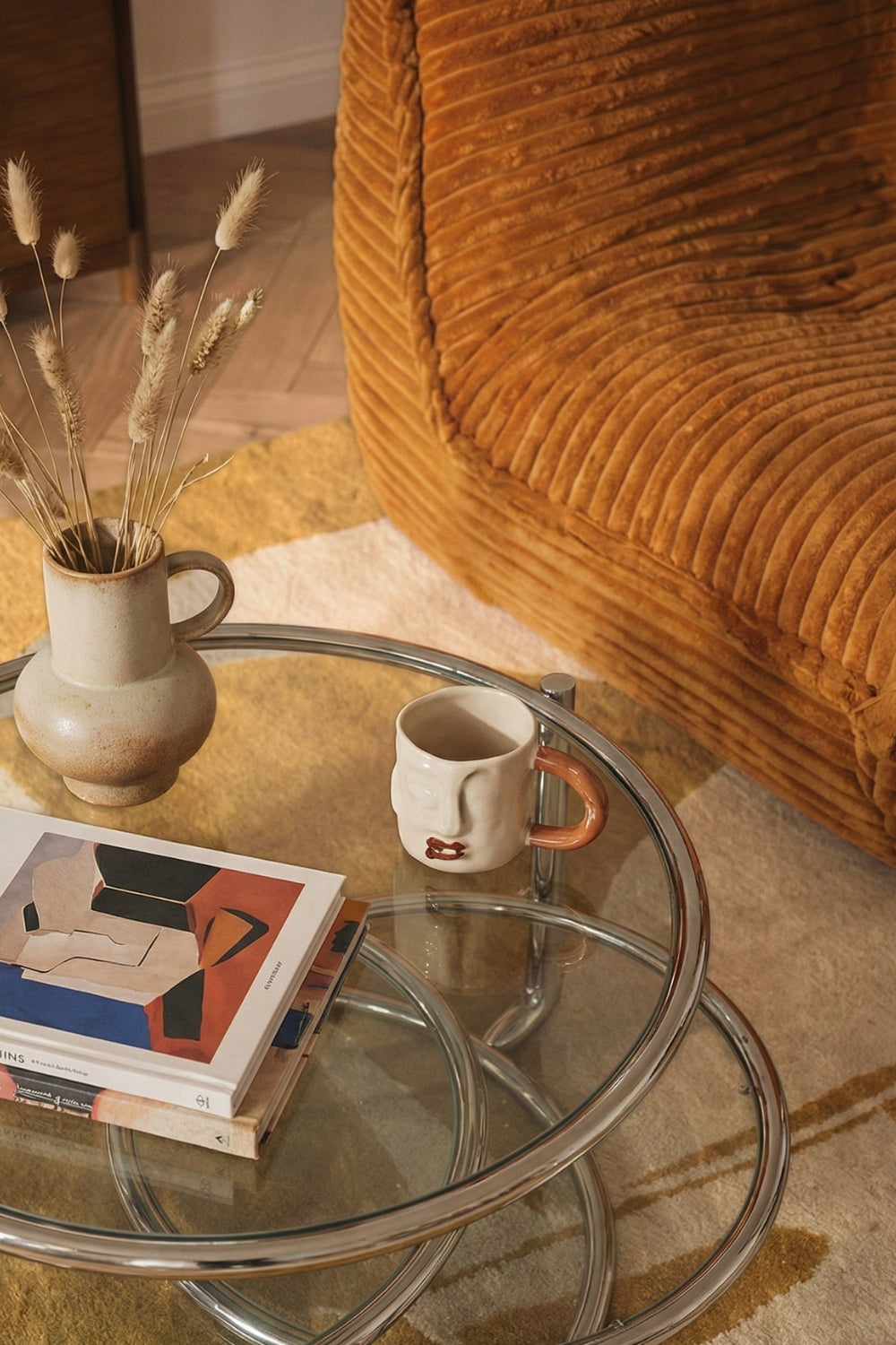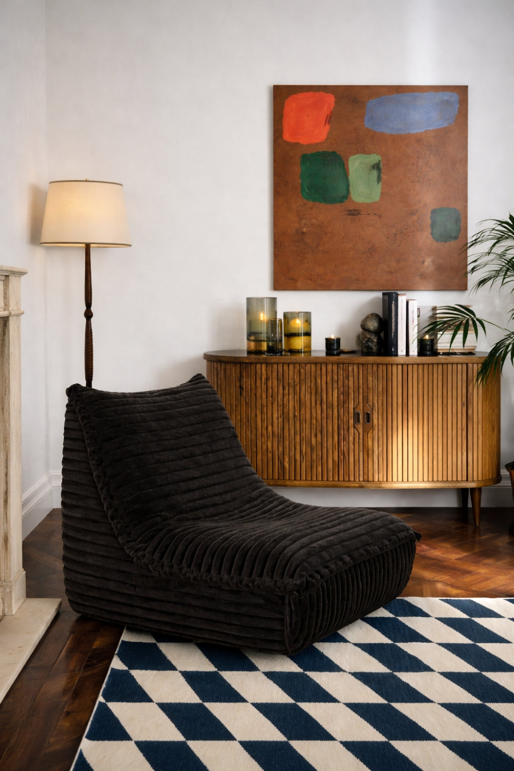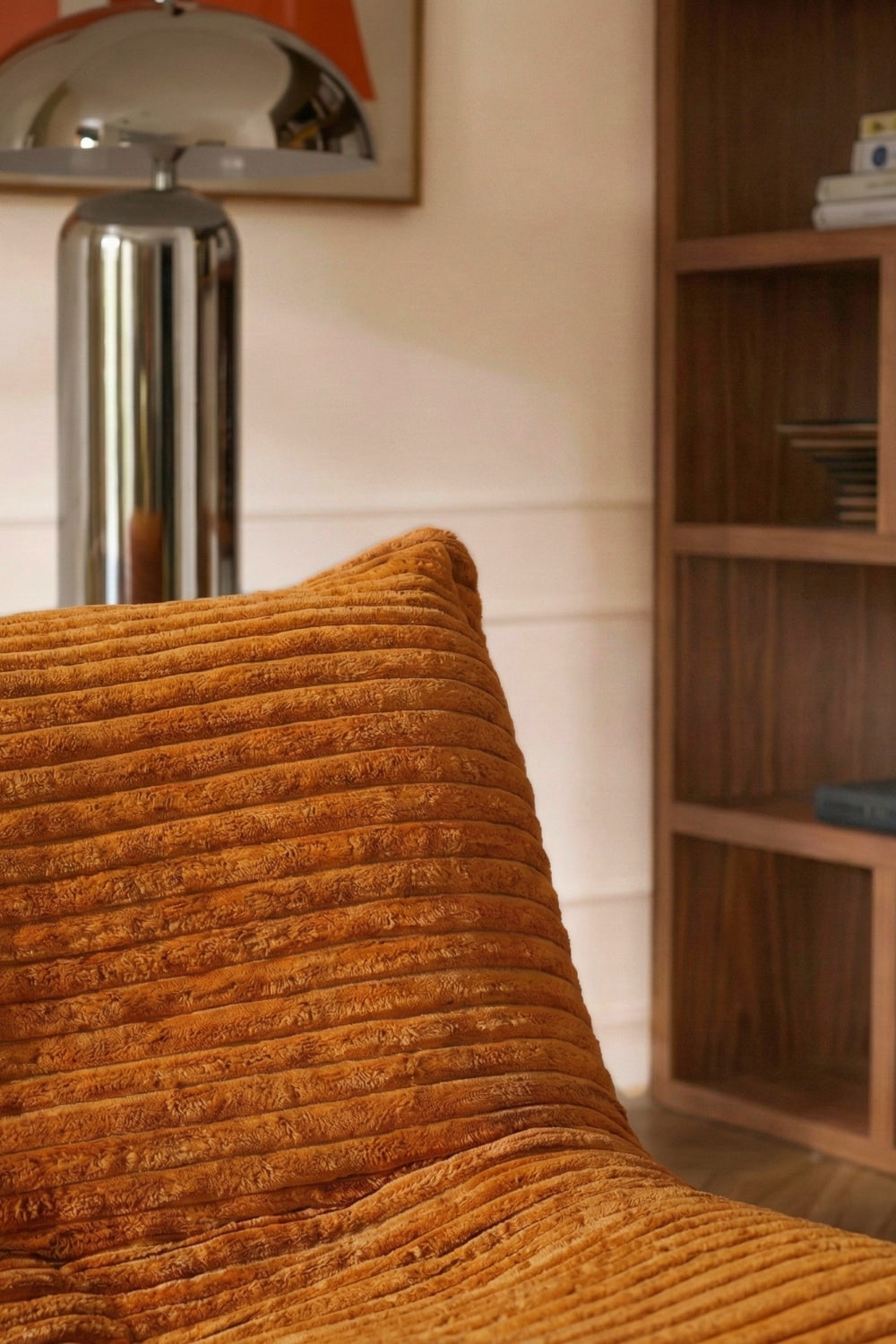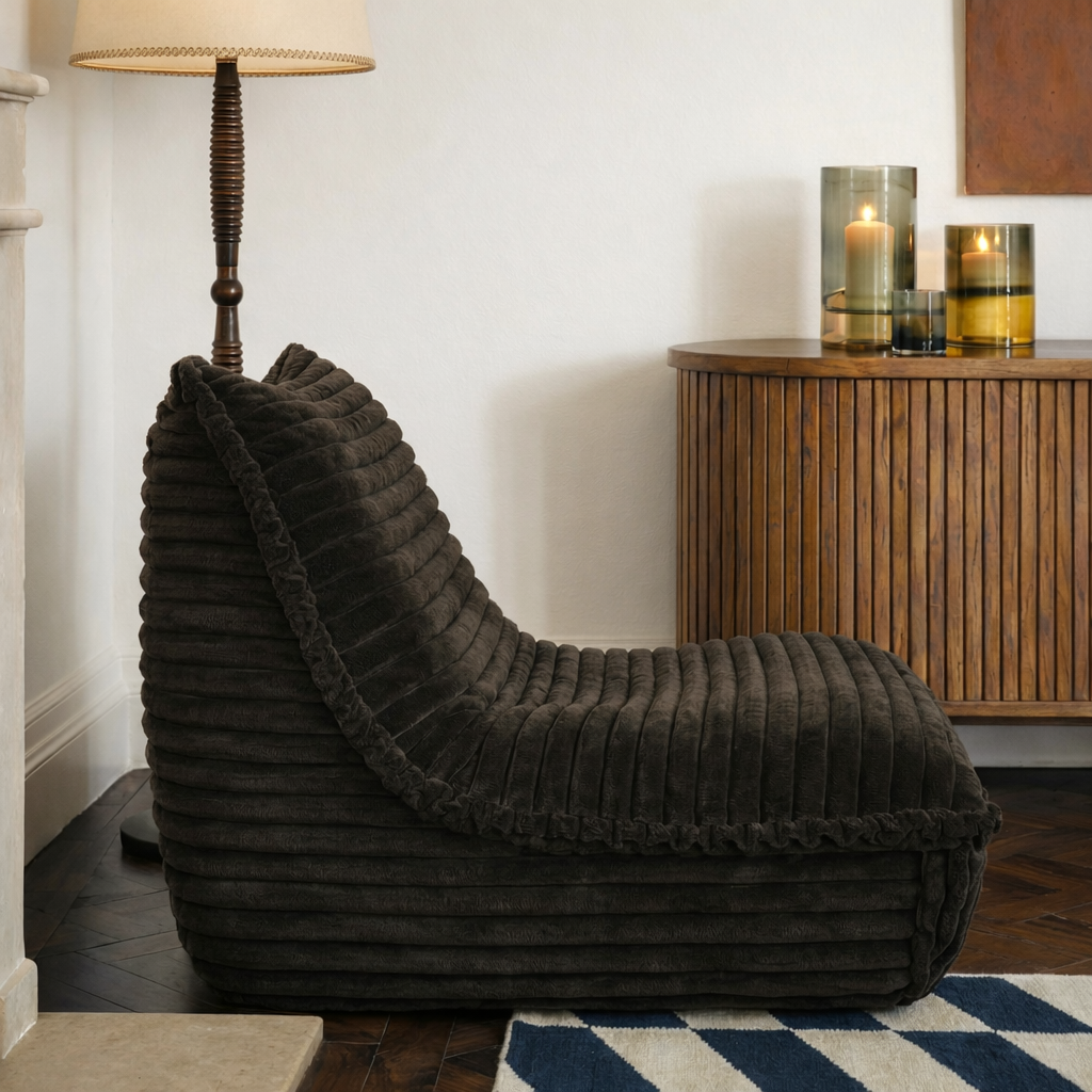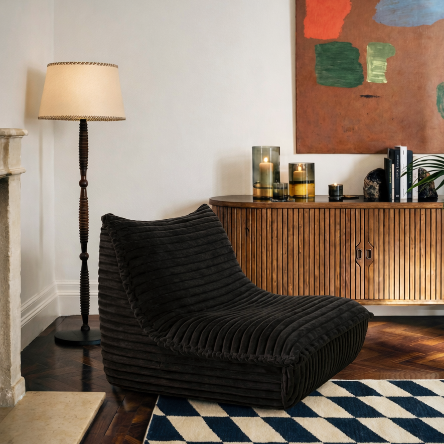 Un fauteuil en velours côtelé à larges bandes, disponible en 5 coloris soigneusement sélectionnés.